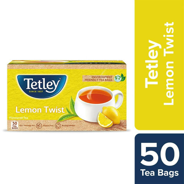 • Now refresh, rejuvenate, and relax with Tetley. Introducing Tetley Lemon Twist Tea which indulges you in the refreshing flavour of lemon.  The first sip will make you smile at the zesty freshness of our unique lemon flavour. The next sip will delight you with the full-bodied robustness and rich taste of our unique Assam blend. Before you know it, you’re enveloped in the golden glow that comes with the perfect cup of our Lemon Twist. It’s that little moment when delightful lemon comes together with the finest Assam Tea to bring a touch of magic to your day. Tetley is available in a variety of black tea flavours, including Tetley Original, Masala Chai, Elaichi, Ginger Zing, Darjeeling, and English Breakfast.