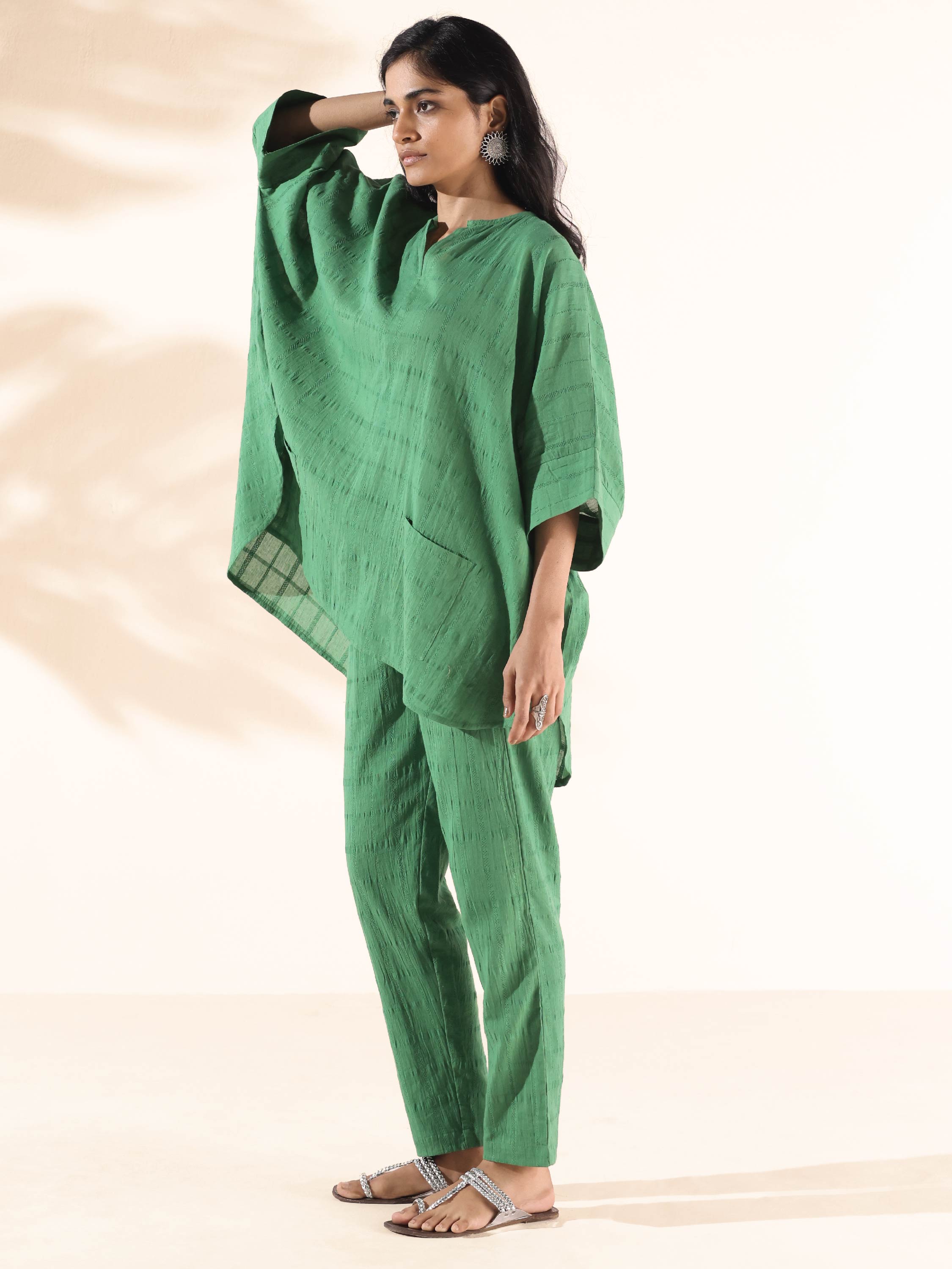 trueBrowns Green Cotton Dobby Oversized Co-ord Set