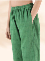 • Cotton Dobby Co-ord Set with Round neck slit and front pockets in relaxed fit. Paired with elasticated waist pant.