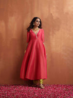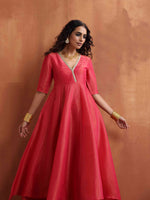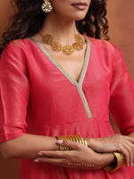 trueBrowns Hot Pink Tissue Flared Anarkali Kurta Set - XS