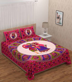 Vamika Printed Cotton Dafli Pink Bedsheet With Pillow Covers (PM Dafli Pink)