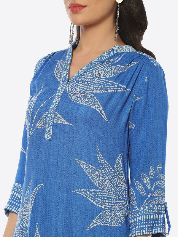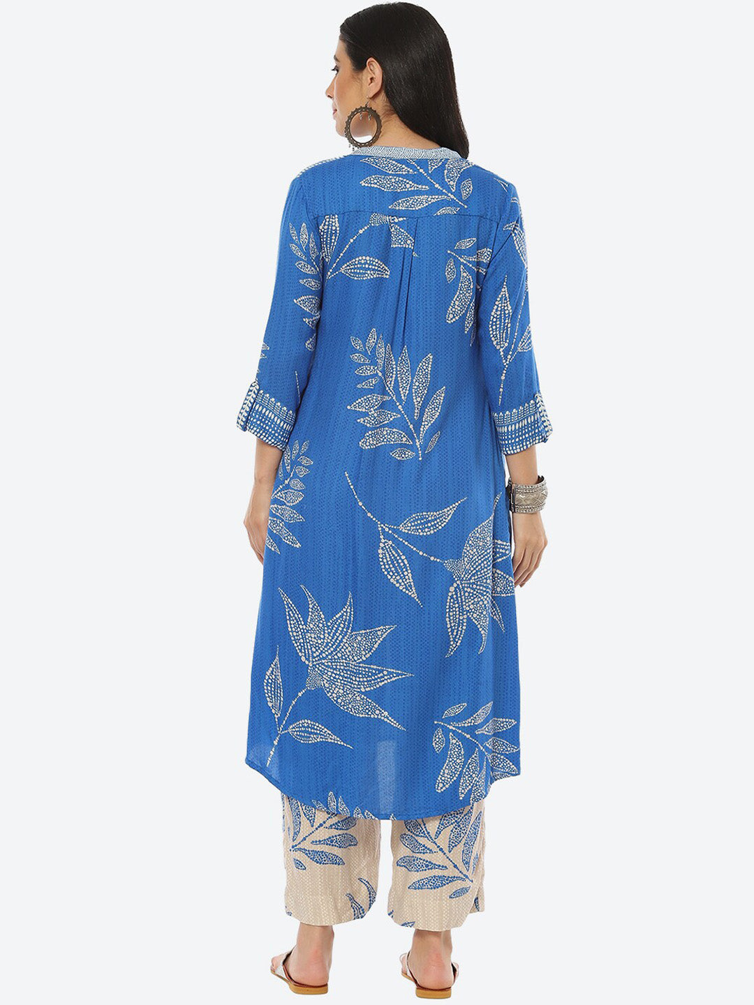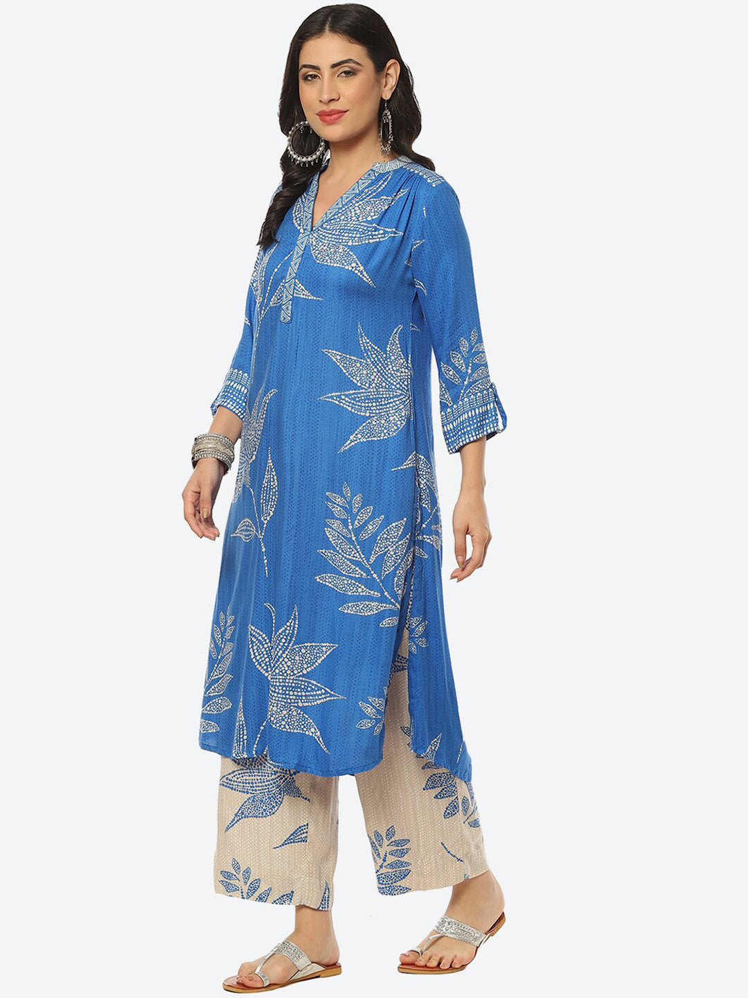 Biba Women Floral Printed Kurta with Palazzos Product Details Blue printed Kurta with PalazzosKurta design: Floral printed Straight shape Regu...