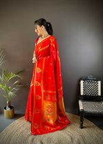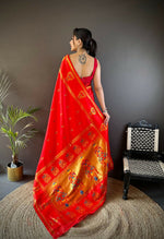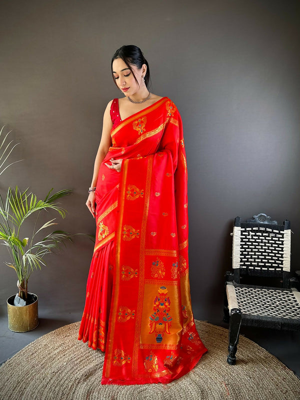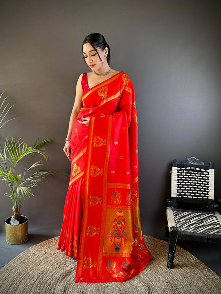 Joban Fashion Red Meenakari Weaving Paithani Sarees