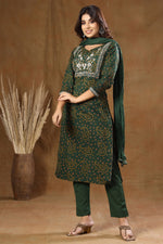 Kaajh Women's Green Bandhej Embroidery Suit Set