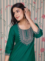 Ode by House of Pataudi Women Embroidered Straight Kurta Product Details Colour: green Tribal embroidered Round neck Three-quarter, reg...