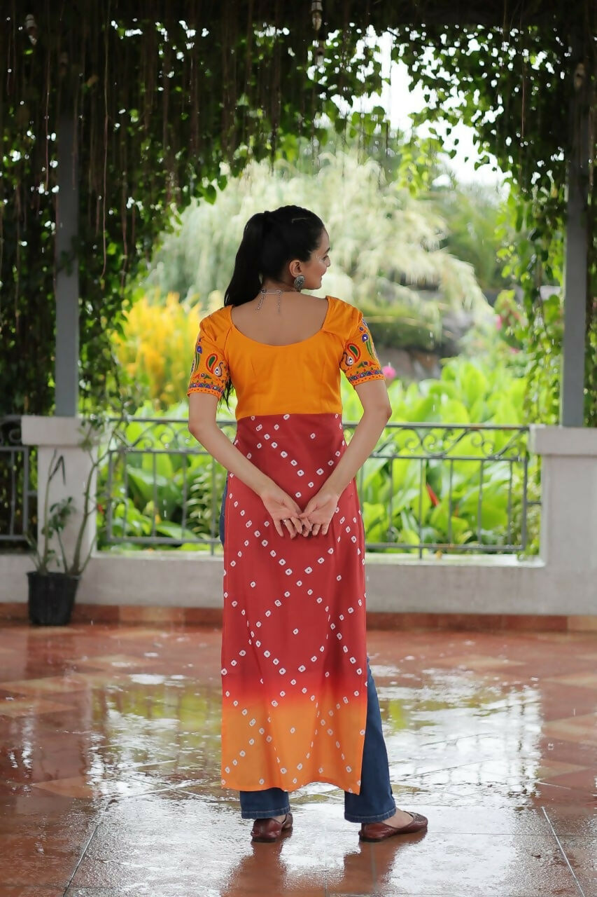 Vastranavya Yellow Navratri Special Kutchi Gamthi Work with Printed Kurti