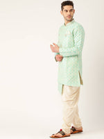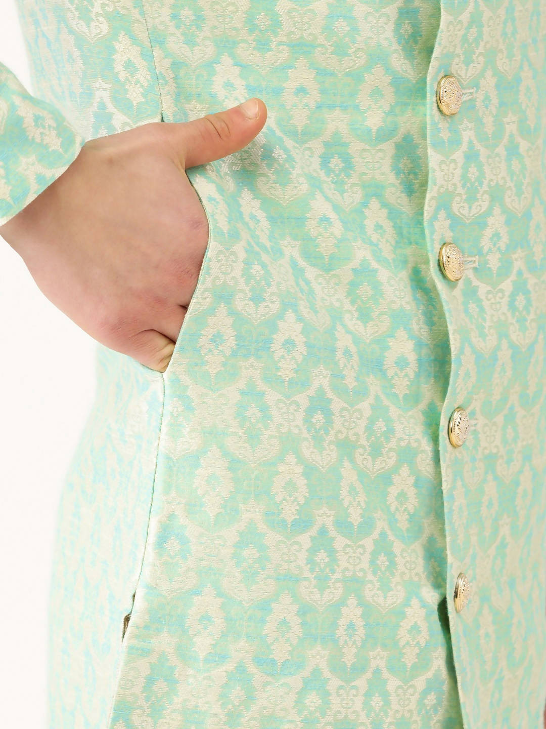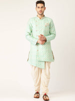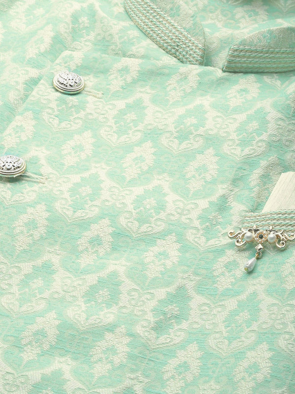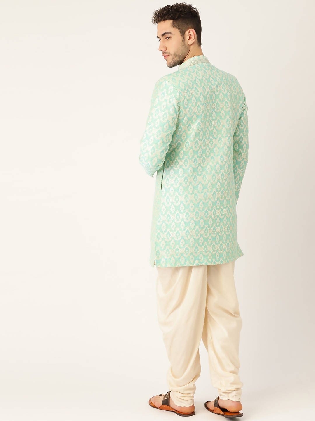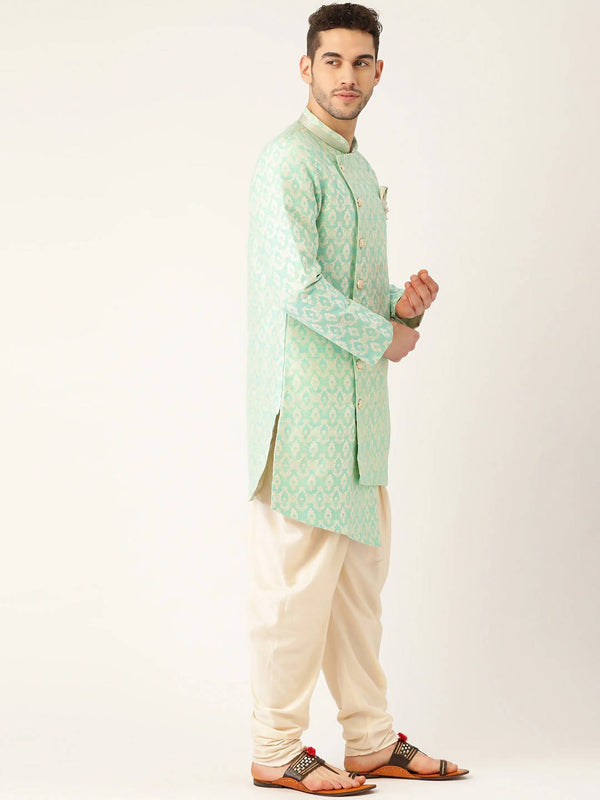 Manyavar Men Green & Off-White Jacquard Angrakha Kurta with Patiala