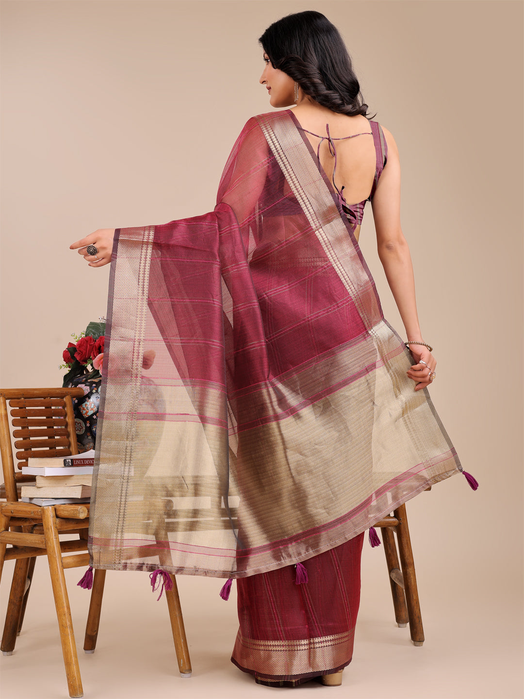 Astita Magenta Organza Woven Zari Work Traditional Tassel Saree - Distacart