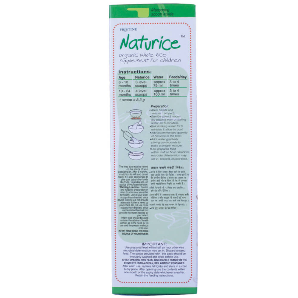 Pristine Naturice – Organic Whole Rice Baby CerealKey Ingredients: Organic Rice Organic Sugar Salt Minerals Vitamins Directions of use: For (6 Mont...