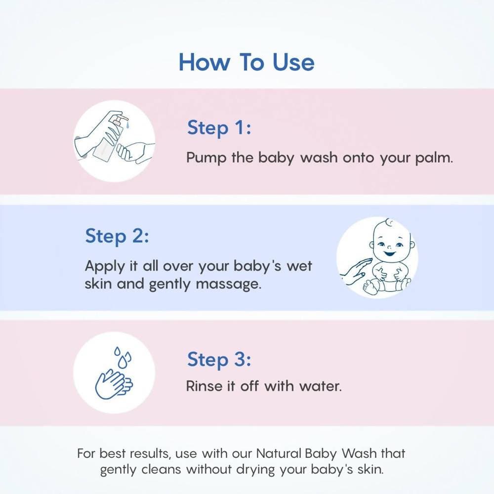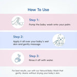 How to use STEP 1: Pour the baby wash onto your hand and gently rub on the baby's wet skin