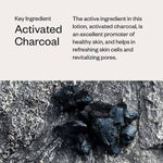 Activated charcoal: The active ingredient in this lotion, activated charcoal, is an excellent promoter of healthy skin, and helps in refreshing skin cells and revitalizing pores.