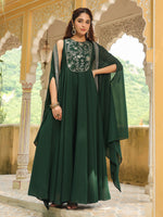 Janasya Dark Green Georgette Embroidered Dress & Jacket
