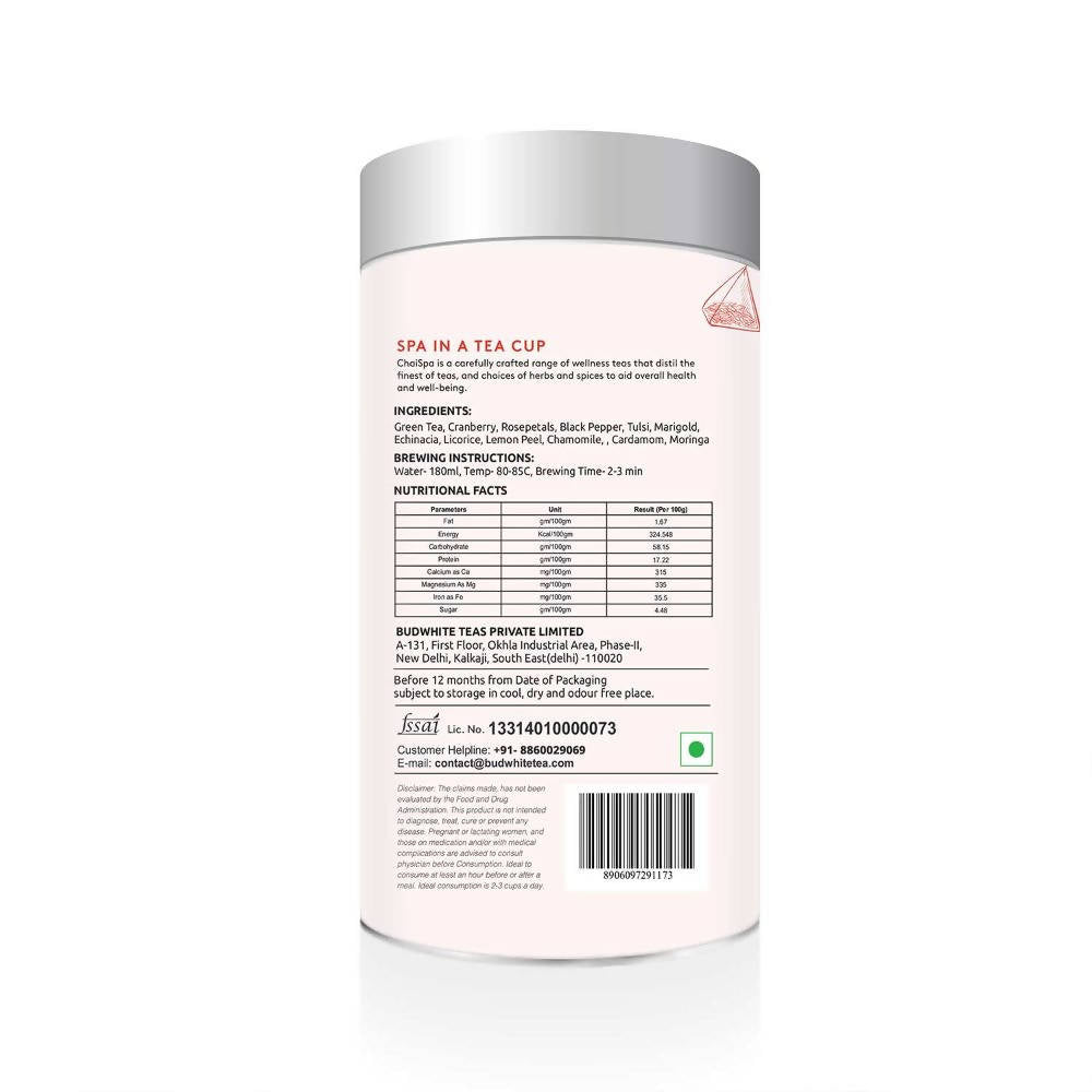 A restorative mix of green tea with rose petals, tulsi, and moringa that increments your immune system and revitalizes your body and mind.