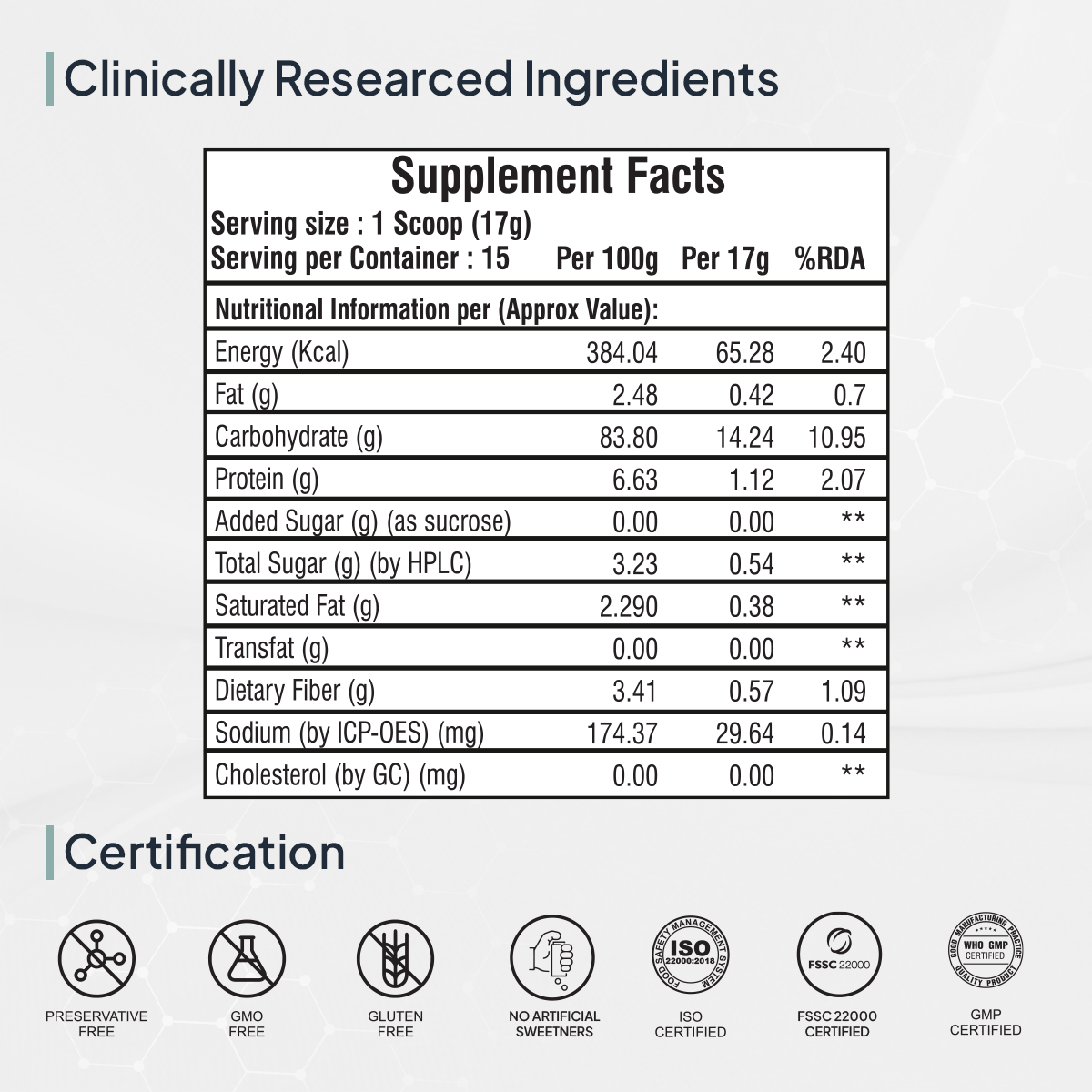 • Ideal serving size of 17grams every day with 150 ml water for best results.