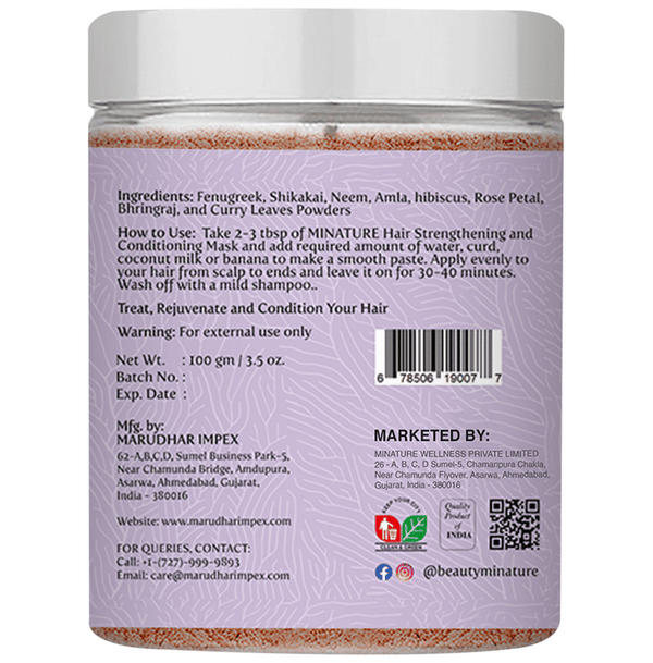 Minature Root Strengthening and Conditioning Mask gently detangles hair and prevents breakage caused due by washing and styling. It minimises the split ends and hair breakage, softens dry hair and makes hair more manageable. Enriched with herbal extract and oil, it nourishes and strengthens hair. This conditioner is safe for coloured and chemically treated hair.