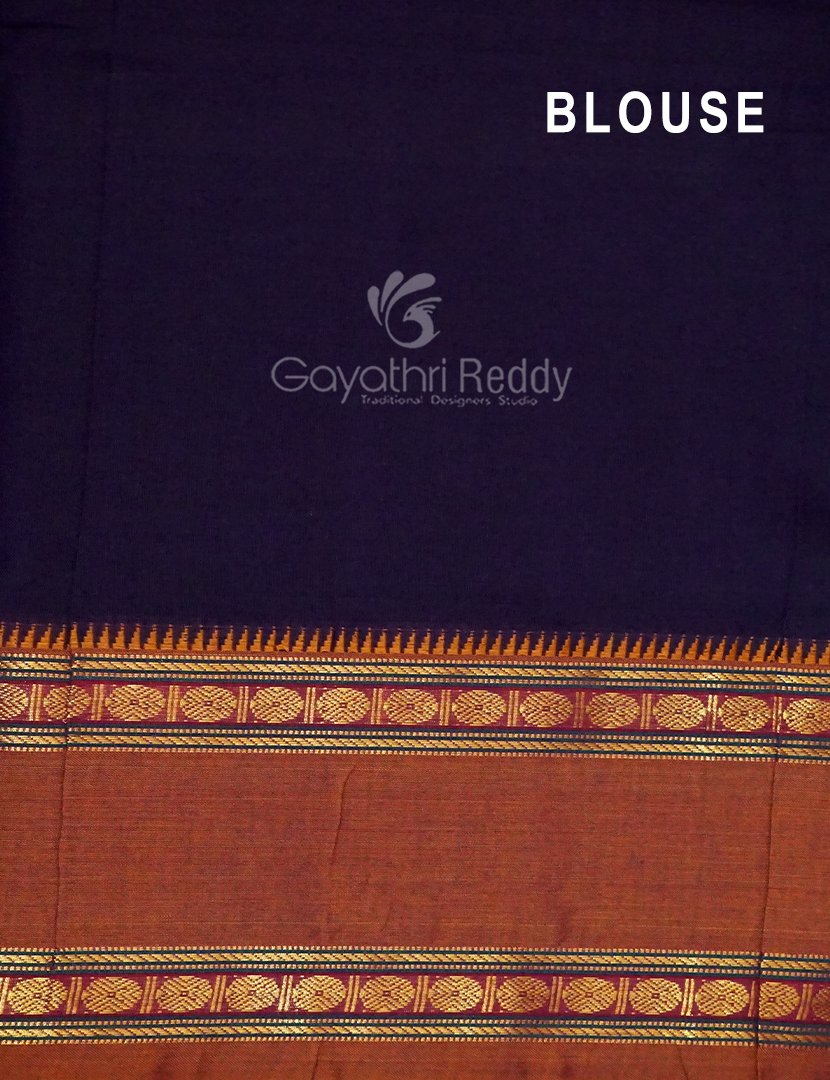 SAREE : Kalanetha dark Brinjal colour saree combination with zari Kanchi style borders..