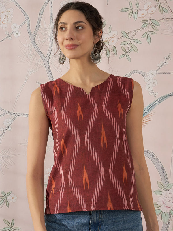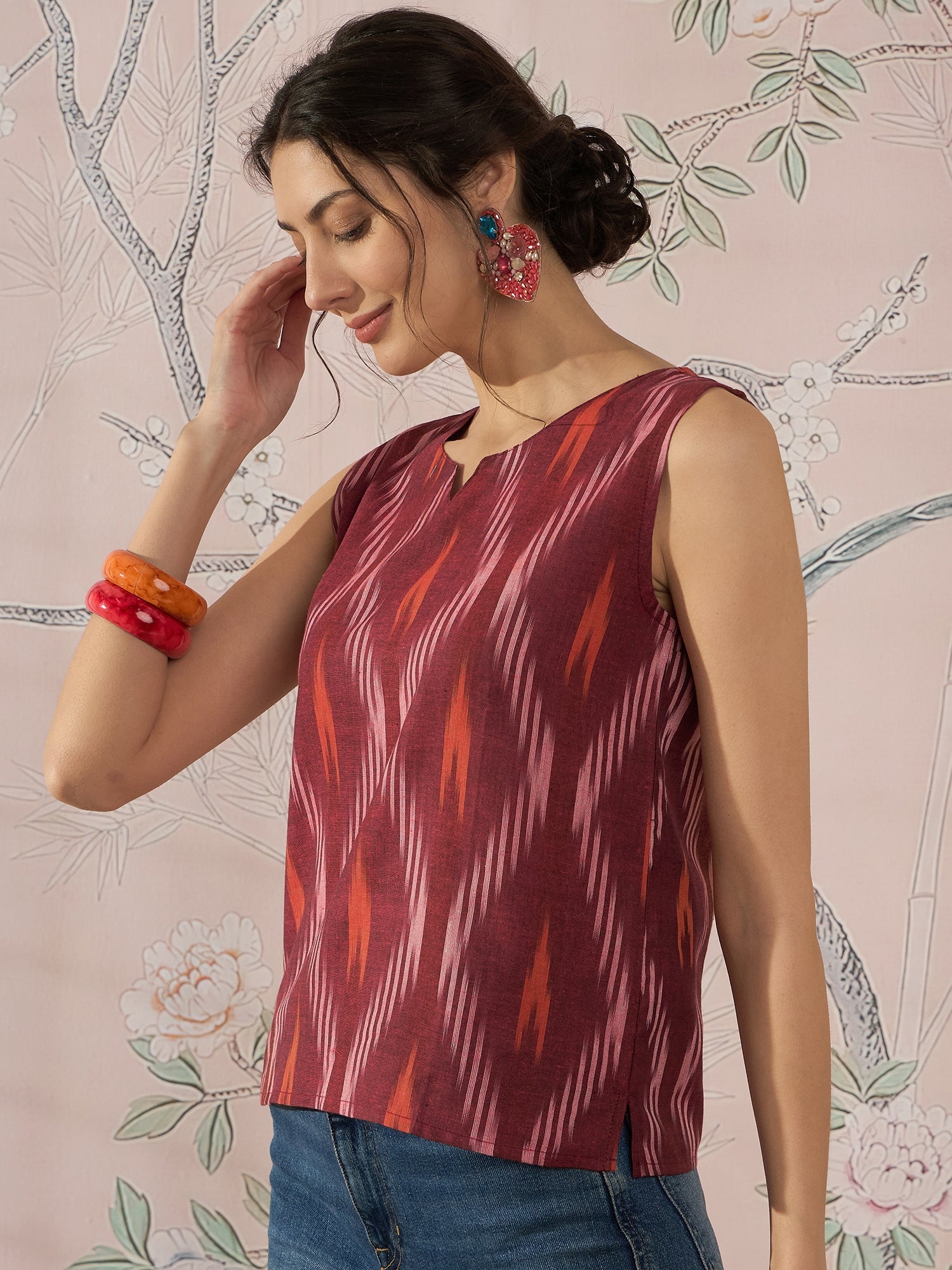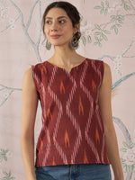 The Rust Ikkat W/S Top is a beautiful fusion of earthy tones and traditional craftsmanship. Designed in a warm rust hue, this top features a classic Ikkat print, adding depth and artisanal charm to its design.