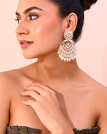 VOJ Gold-Polished Kundan Contemporary Circular Chandbaali Earrings