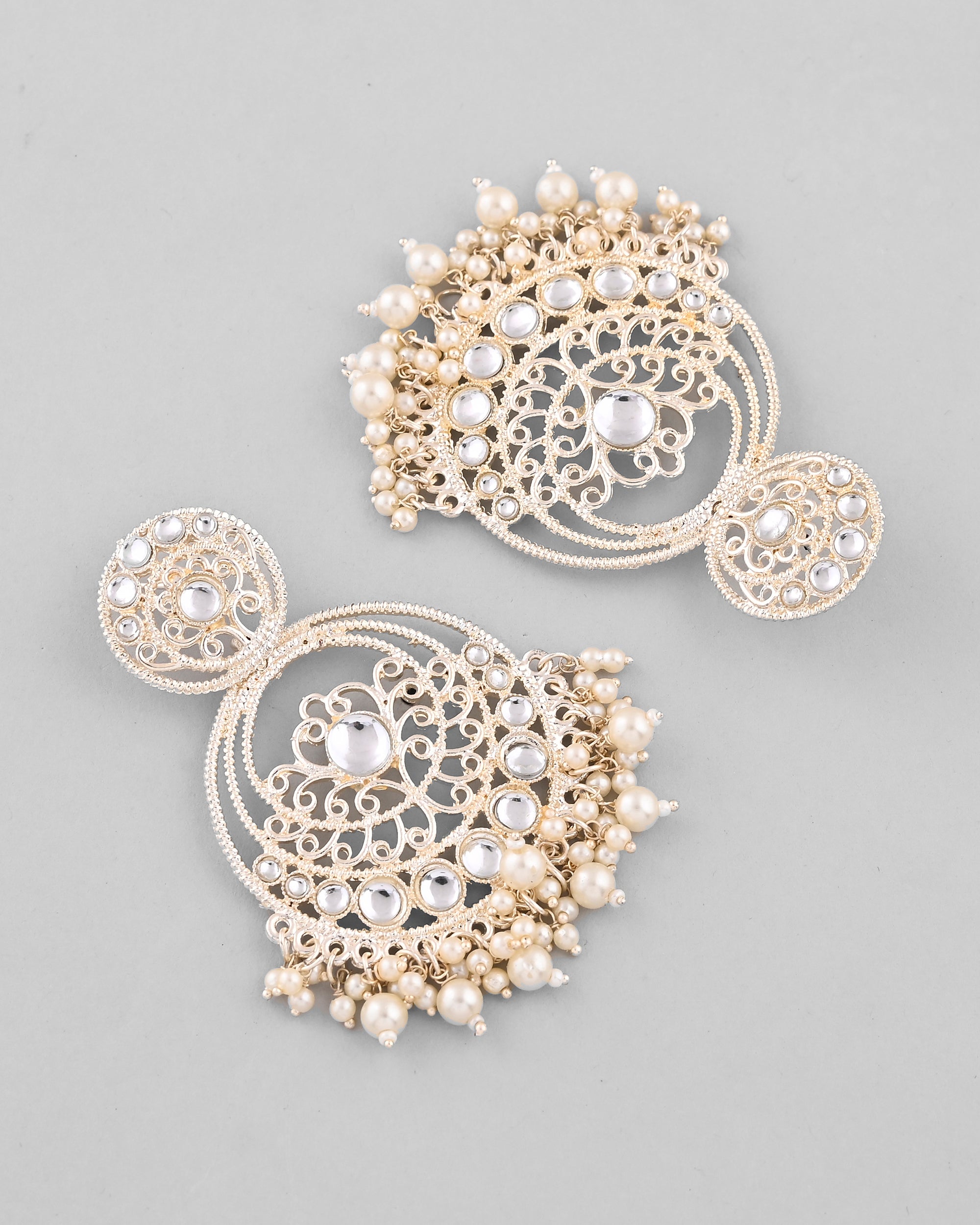 VOJ Gold-Polished Kundan Contemporary Circular Chandbaali Earrings - Distacart