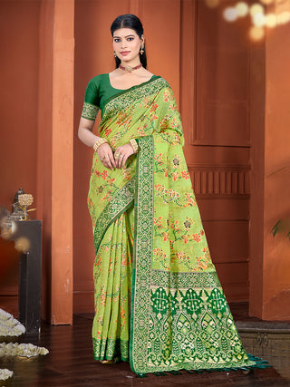 Sangam Prints Green Cotton Silk With Meena Woven Work Traditional Saree