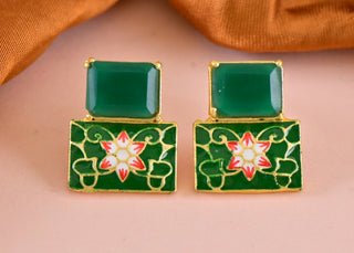 Joban Fashion Women Brass Green Onyx Earrings