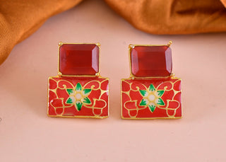 Joban Fashion Women Brass Red Onyx Earrings