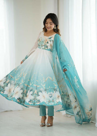 Joban Fashion Aqua Blue Kurta Set Organza Sequin Embroidery Work