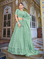 Myra Pista Green Georgette Embroidered Designer Lehenga Choli