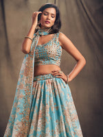Myra Sky Blue Organza Silk Embroidered Lehenga