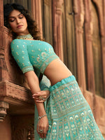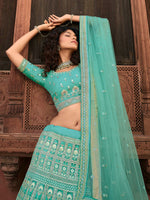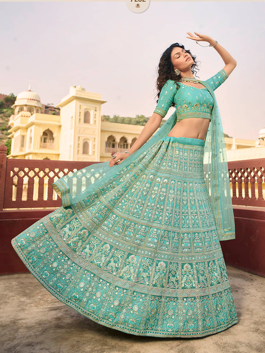 Myra Turquoise Organza Embroidered Lehenga - Distacart