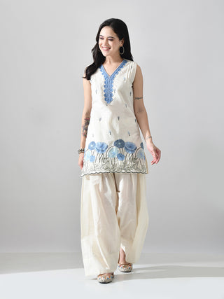 Myshka Women Off White Embroidered Short Kurta With Farsi Salwar