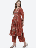 Biba Women Rust Ethnic Motifs Printed Pleated Pure Cotton Kurta with Palazzos
