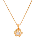 This stunning gold-plated pendant features a delicate floral design with a shimmering central stone, making it a perfect blend of elegance and charm. Designed for daily wear or special occasions, it complements any outfit effortlessly. A timeless piece, this pendant makes an excellent gift for birthdays, anniversaries, or as a personal style statement.
