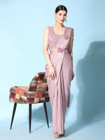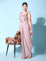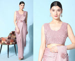 Pink Imported Crush Lycra Texture Pattern Ready to Wear Saree with stitched Blouse - Nirvana