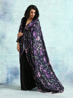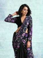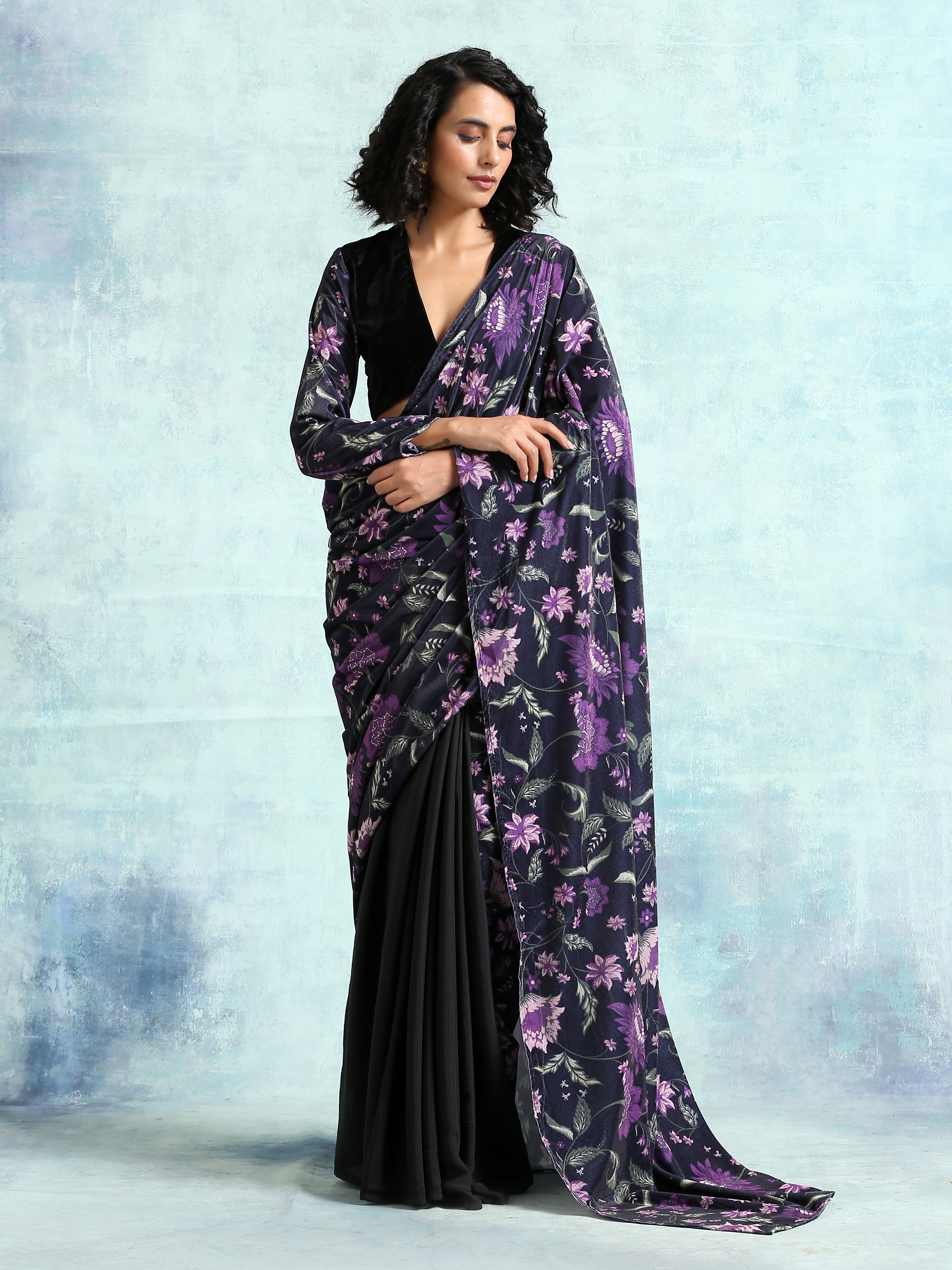 trueBrowns Black Printed Velvet Ready to Wear Saree