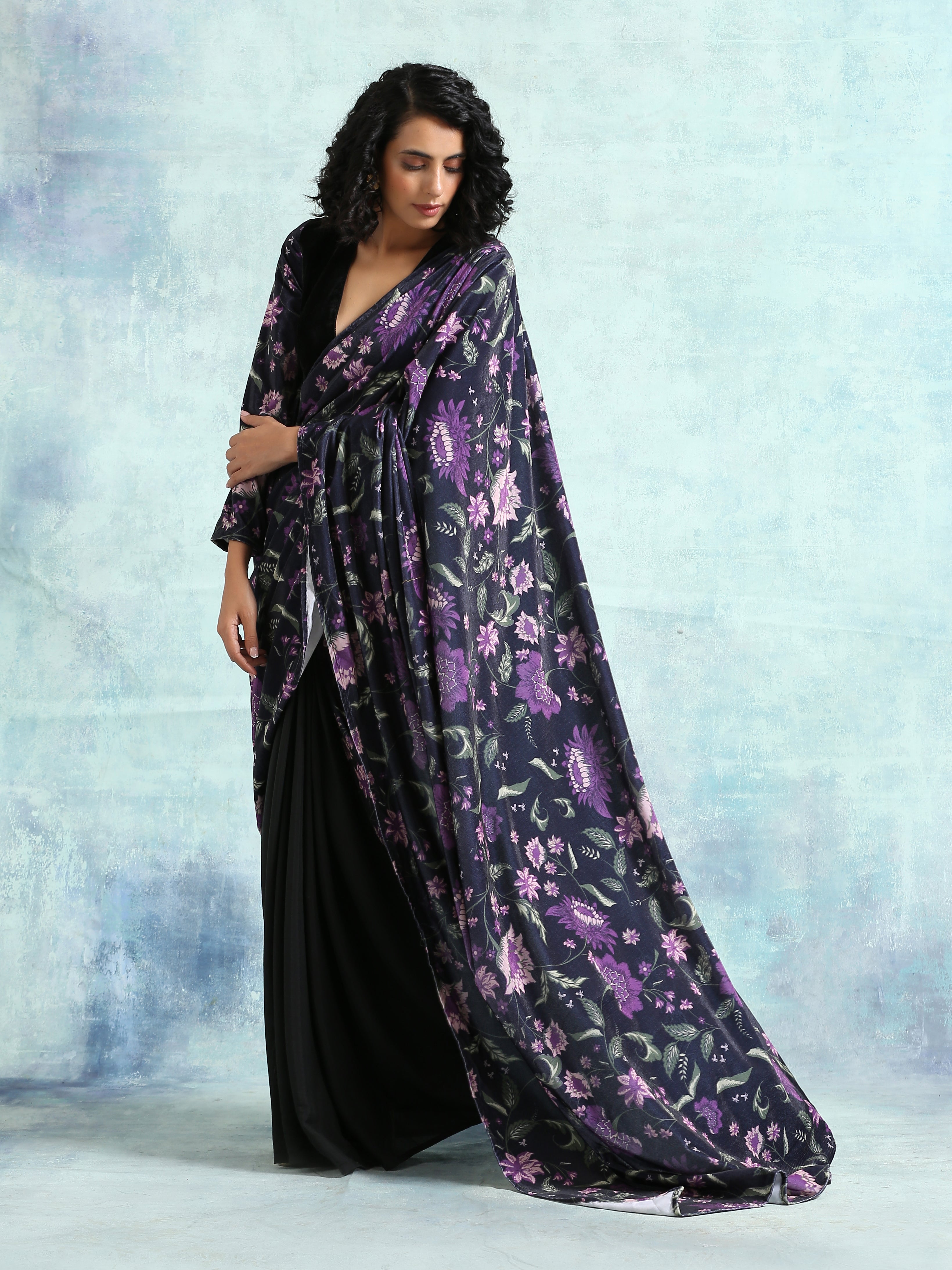 trueBrowns Black Printed Velvet Ready to Wear SareeDescription Velvet Silk printed pre-stitched pleats saree. Style it with a blouse to complete th...