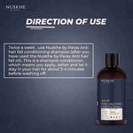 • Twice a week, use Nuskhe by Paras Anti-hair fall conditioning shampoo (after you have used the Nuskhe by Paras Anti-hair fall oil). This is a shampoo-conditioner, which means you apply, lather, and let it stay in your hair for about 3-4 minutes before washing off.