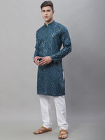 Sojanya Ethnic Motifs Embroidered Sequinned Pure Cotton Kurta with Churidar Product Details Teal embroidered Kurta with ChuridarKurta design: ...