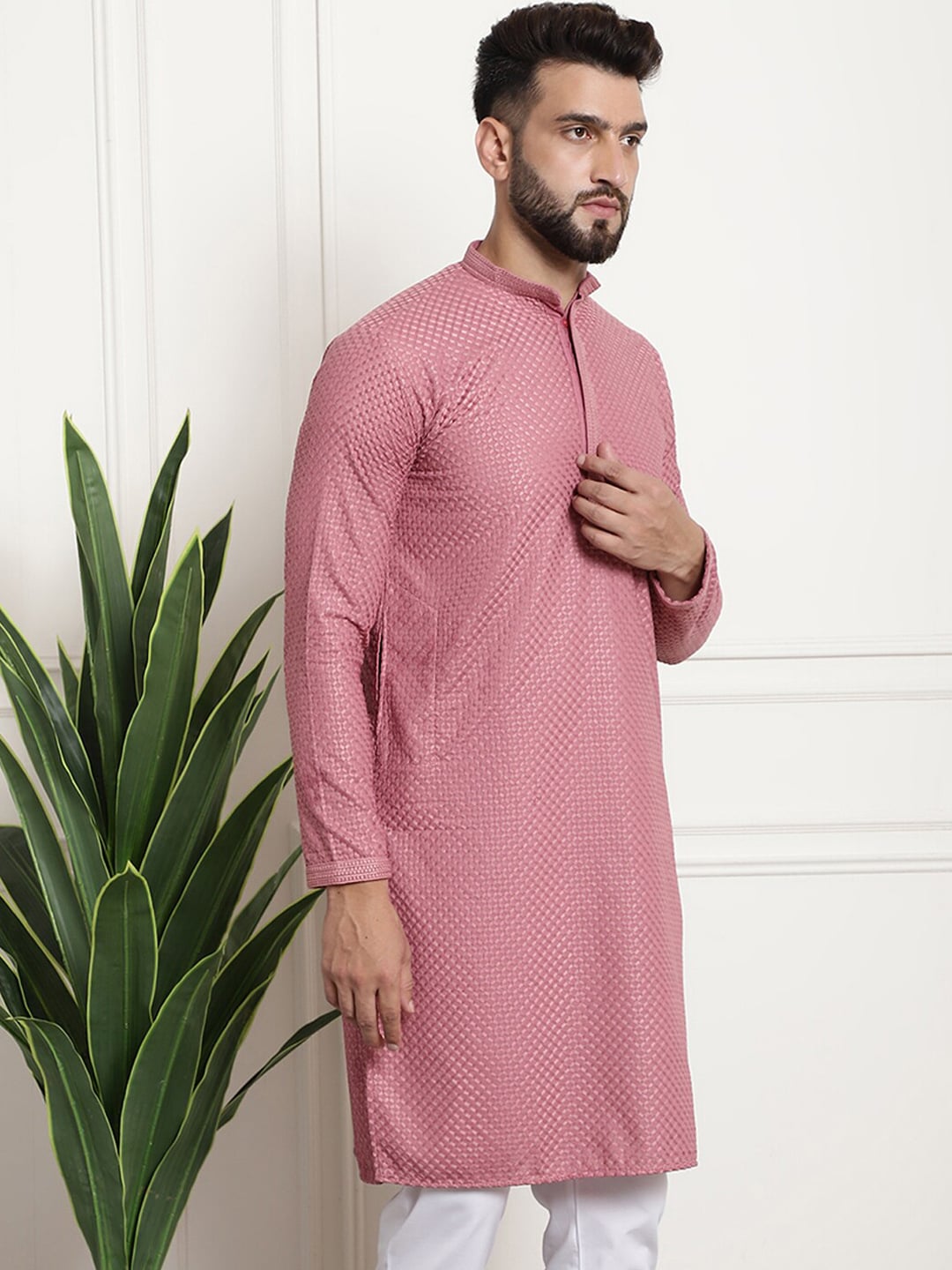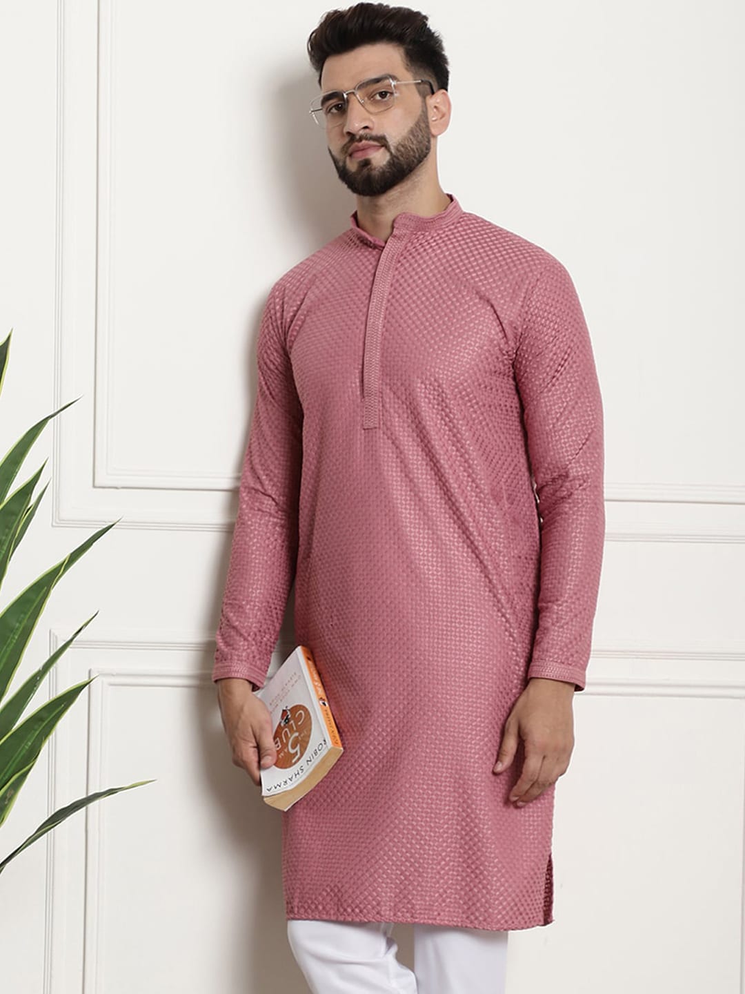 Sojanya Geometric Embroidered Thread Work Pure Cotton Straight Kurta Product Details Colour: coral Geometric embroidered Mandarin collar Long, ...