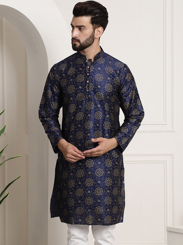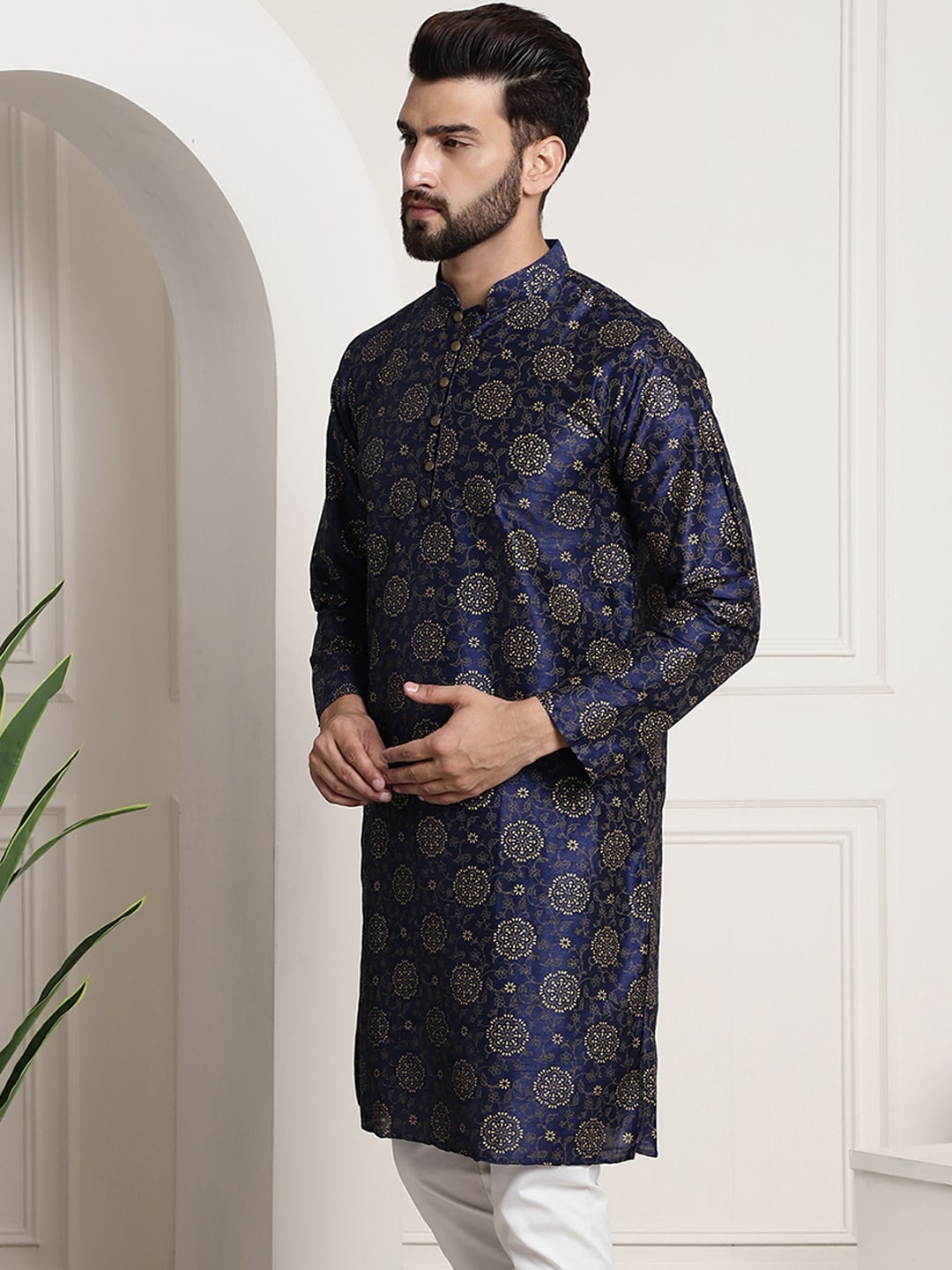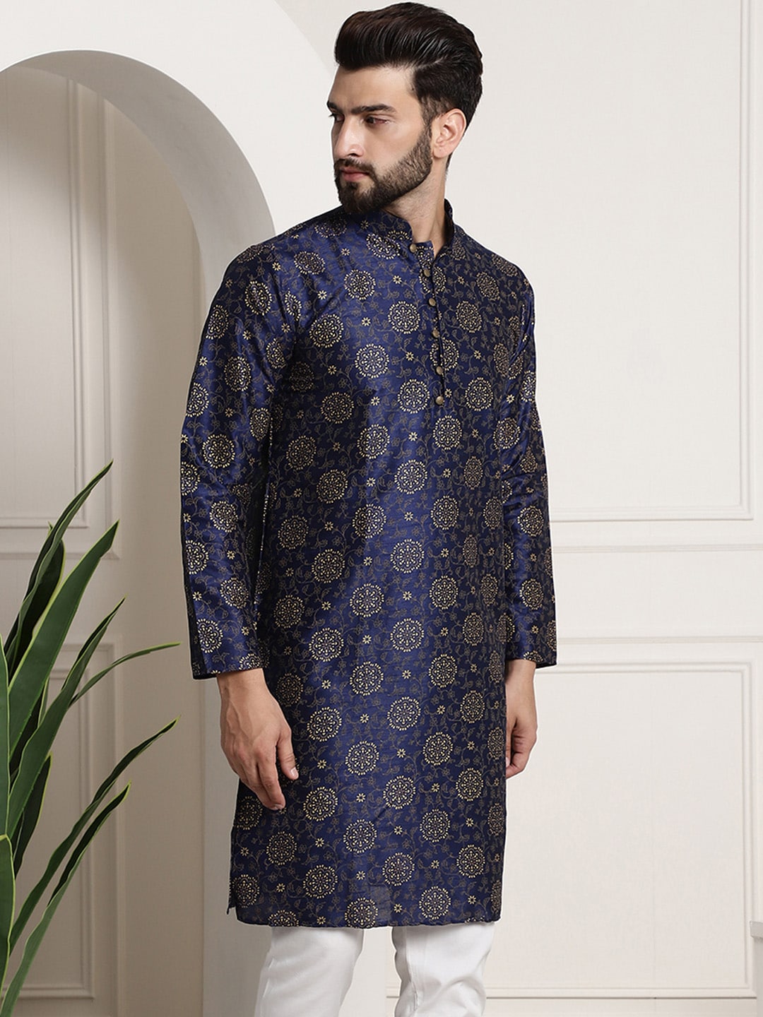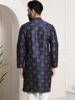 Sojanya Men Navy Blue & Golden Ethnic Motifs Printed Indigo Kurta - Distacart