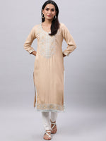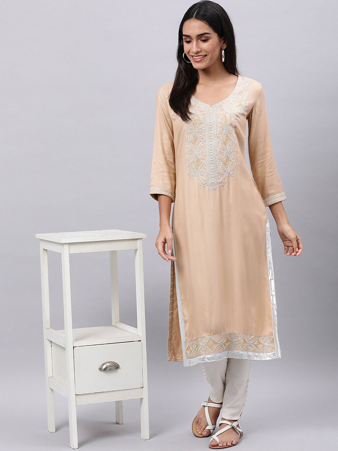 Souchii Women Ethnic Motifs Yoke Design Thread Work Kurta Product Details Ethnic motifs yoke design Round neck Three-quarter, regular sleeves S...