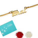 trueBrowns X Voylla Gold-Toned 'Bhai' Bracelet Rakhi With Roli Chaawal Pack