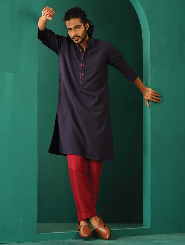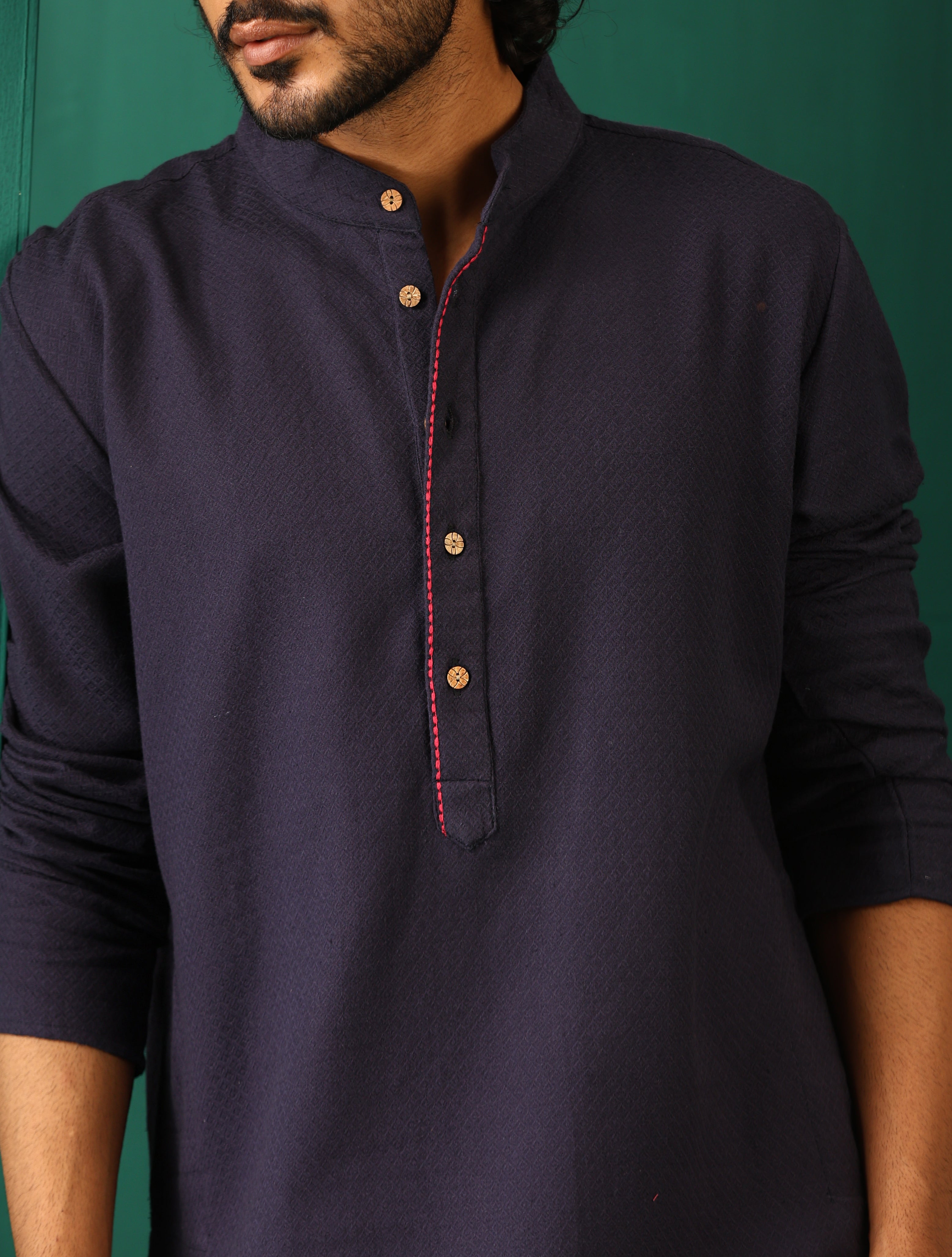 trueBrowns Men's Navy Dobby Textured Kurta - Distacart