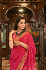 Very Much Indian Handloom Pure Cotton Paithani Radha Krishna Pallu-Red Delight