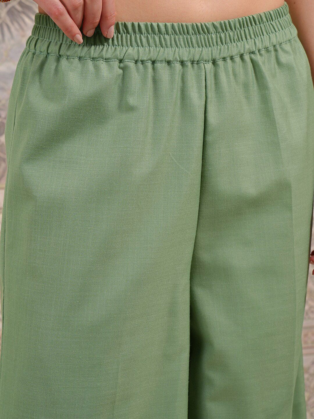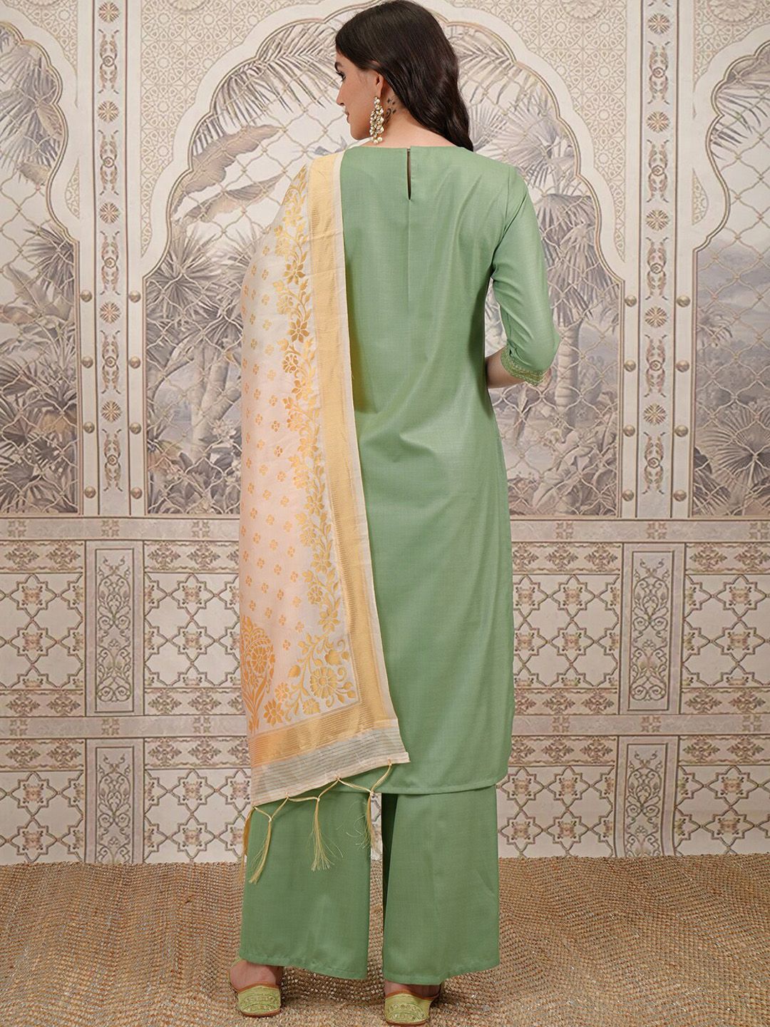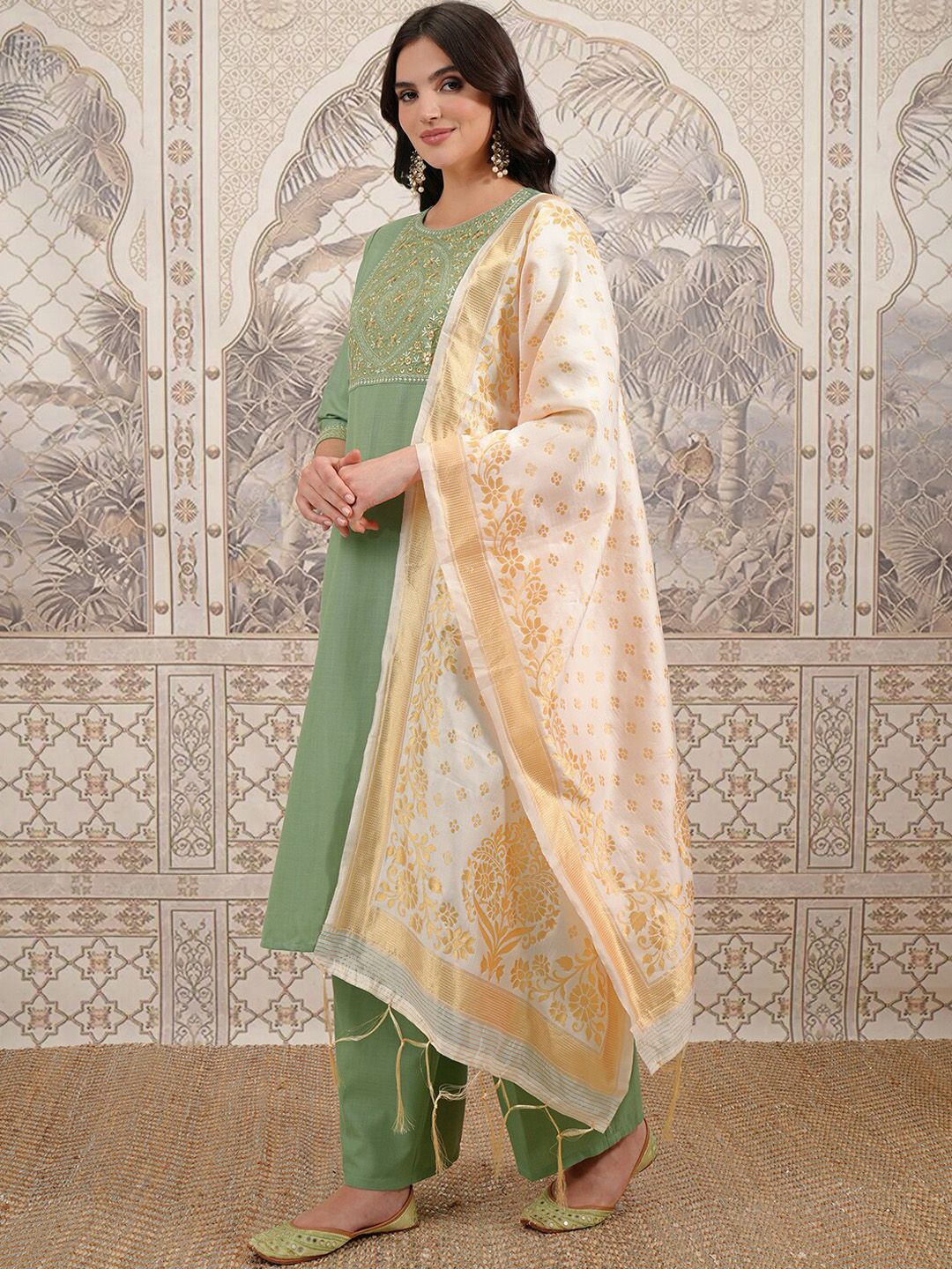 Vishudh Green Ethnic Motifs Yoke Design Thread Work Straight Kurta With Palazzos & Dupatta
