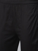 Black Solid trousers, has elasticated waistband, slip-on closure