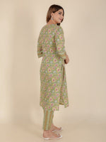 Aramya Straight Soft Cotton Floral Print Women's Kurta Set - Green