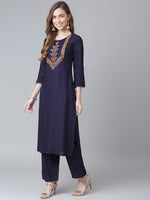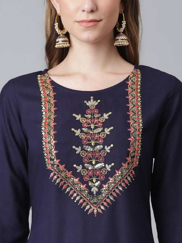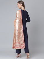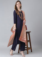 Khushal K Ethnic Motifs Embroidered Kurta with Palazzos & Dupatta Product Details Blue embroidered Kurta with Palazzos with dupattaKurta des...