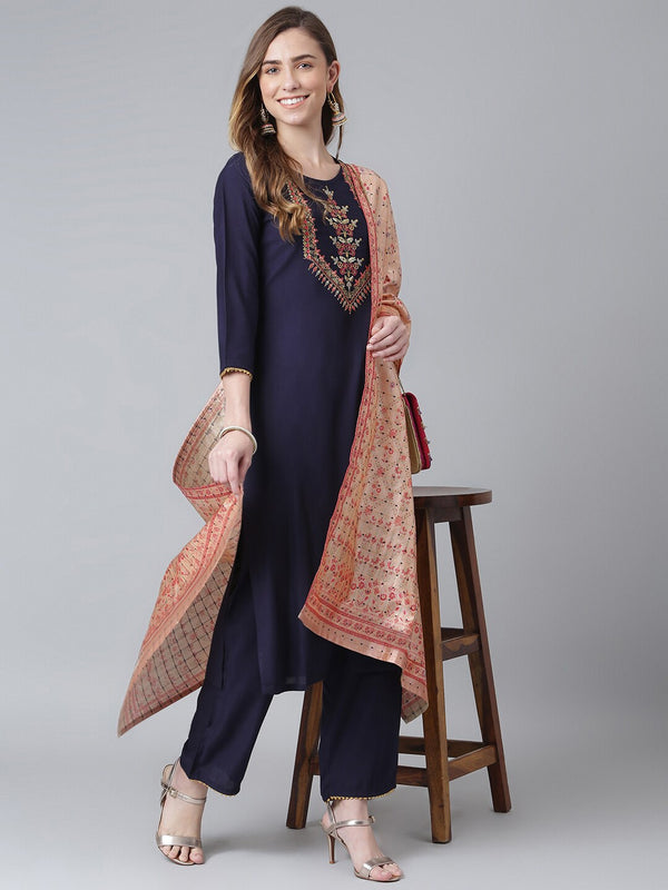 Khushal K Ethnic Motifs Embroidered Kurta with Palazzos & Dupatta