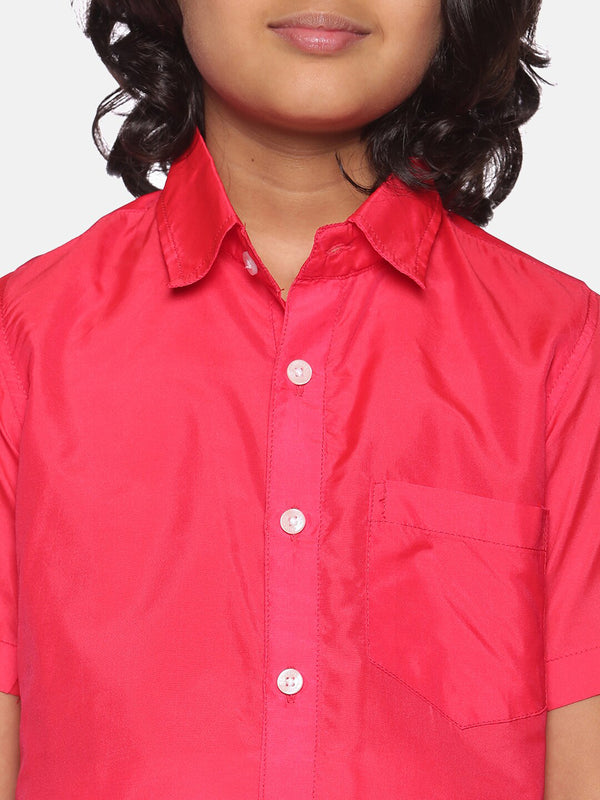 Sethukrishna Boys Rose & White Shirt & Dhoti